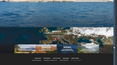 요즘 저는 cadillac 프로젝트로 한창 바쁜데요, cadillac ats 모델과 함께 전세계의 특이한 지역(PATAGONIA, MOROCCO, MONACO, CHINA)으로 가서 차의 성능을 테스트하는 프로젝트입니다. 이 프로젝트에서 저는 웹사이트의 리드 디벨롭을 맡고 있구요, 이 프로젝트는 저에겐 HTML과 WebGL의 새로운 가능성을 시도해본 재미있는 프로젝트입니다. 뿐만 아니라 프로젝트 자체에 사용된 영상이나 이미지들의 퀄리티가 그동안 진행했던 프로젝트들 중에 가장 뛰어나서 기대를 많이 하고 있는 프로젝트이기도 합니다.
