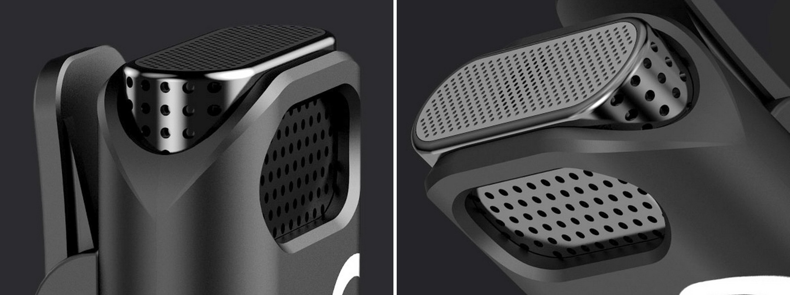 모서리를 곡면으로 처리하고 무광 UV Coating으로 마감한 TX의 외관. Metal Mesh Skin은 음향 성능을 위해 설계되었다.LARK M1은 아주 작고 가볍다. TX의 무게는 11.8g, RX는 17.5g, Charging Case는 80g이며, TX의 크기는 48mm×21.5mm×10mm, RX는 48.3mm×27.6mm×11mm, Charging Case는 83mm×60mm×30mm이다.