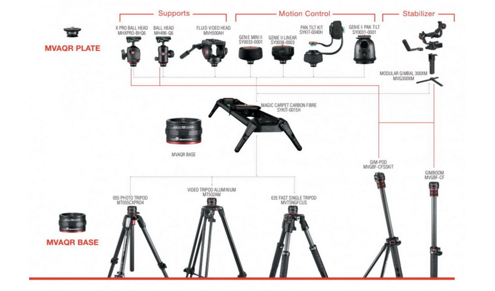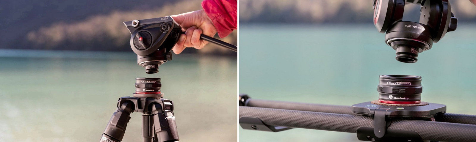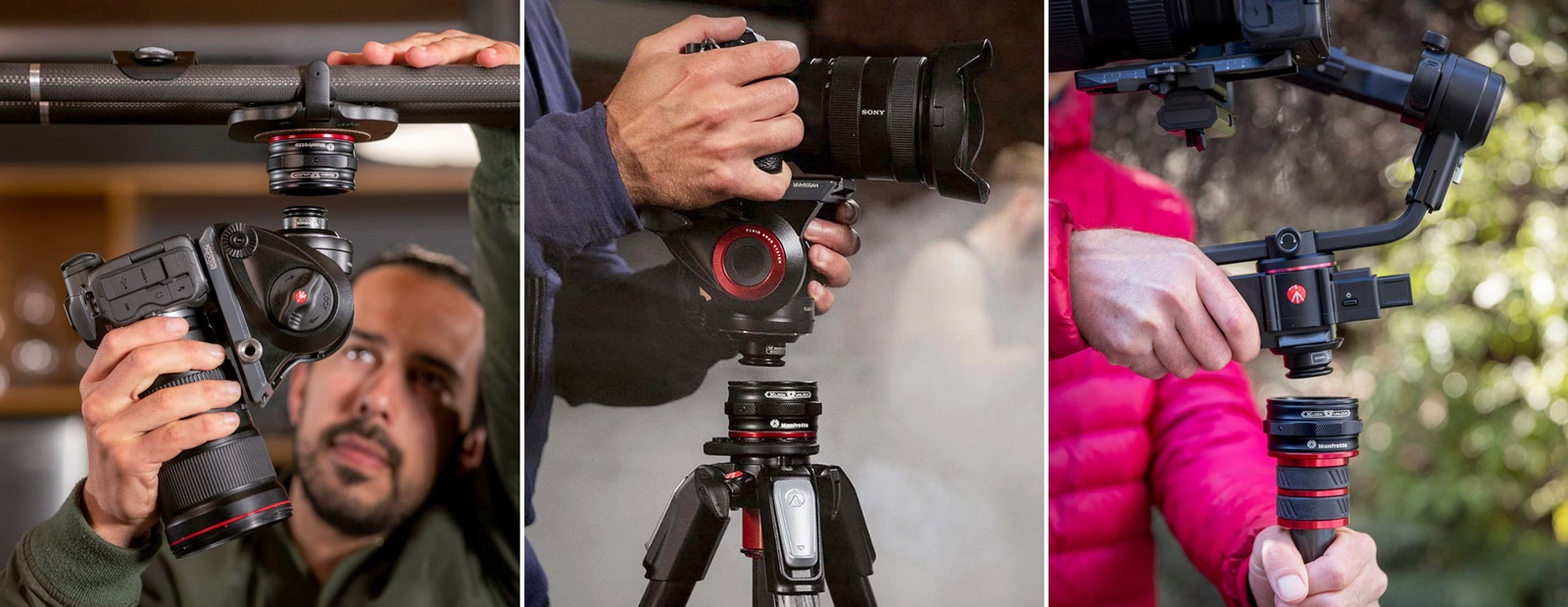 Manfrotto社는 Quick Release System인 Move를 통해, 자사의 제품들을 하나의 Plate로 연결해서 하나의 Tripod Head로 Slider나 Tripod에 사용함으로써 장비를 최소화하면서 효율적으로 Gimbal, Gimpod, Gimboom 등의 장비에 쉽게 장착하고, 탈착할 수 있도록 했다.