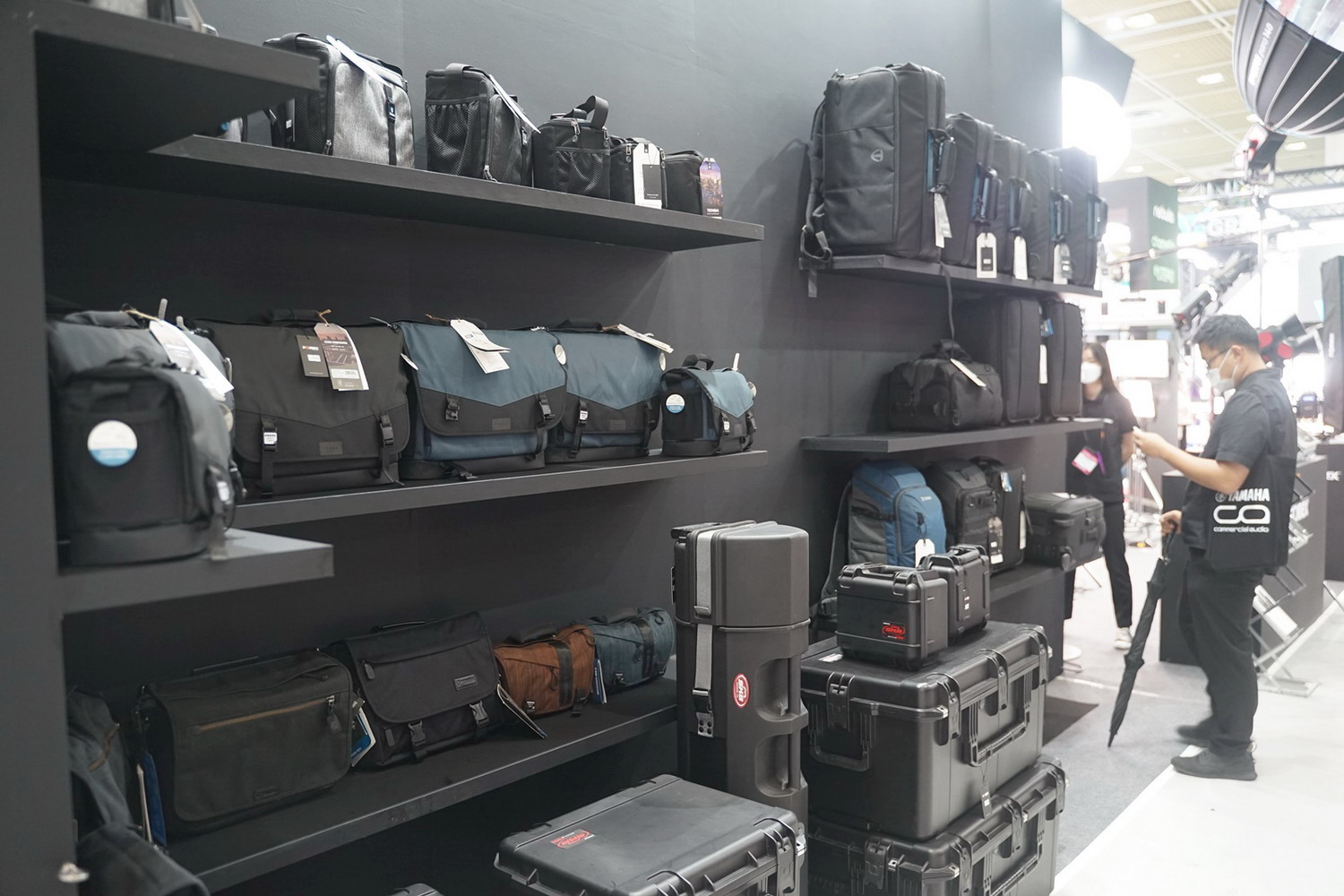 카메라와 장비를 안전하고 효과적으로 담을 수 있는 다양한 가방과 케이스가 전시되었다.