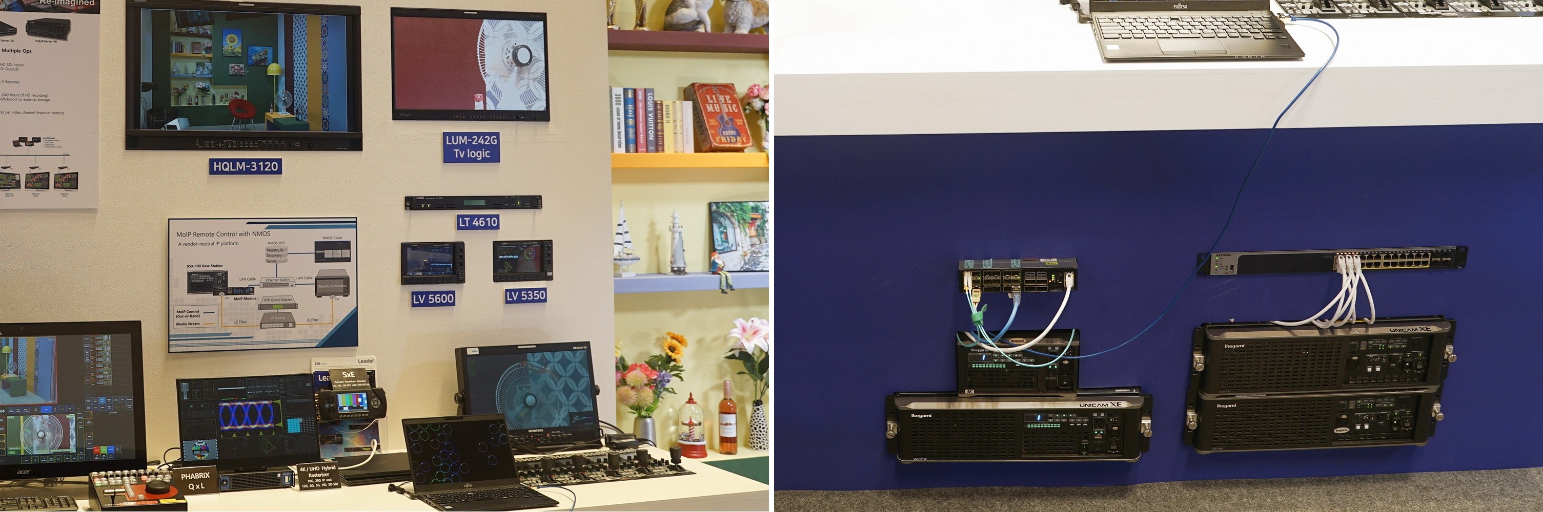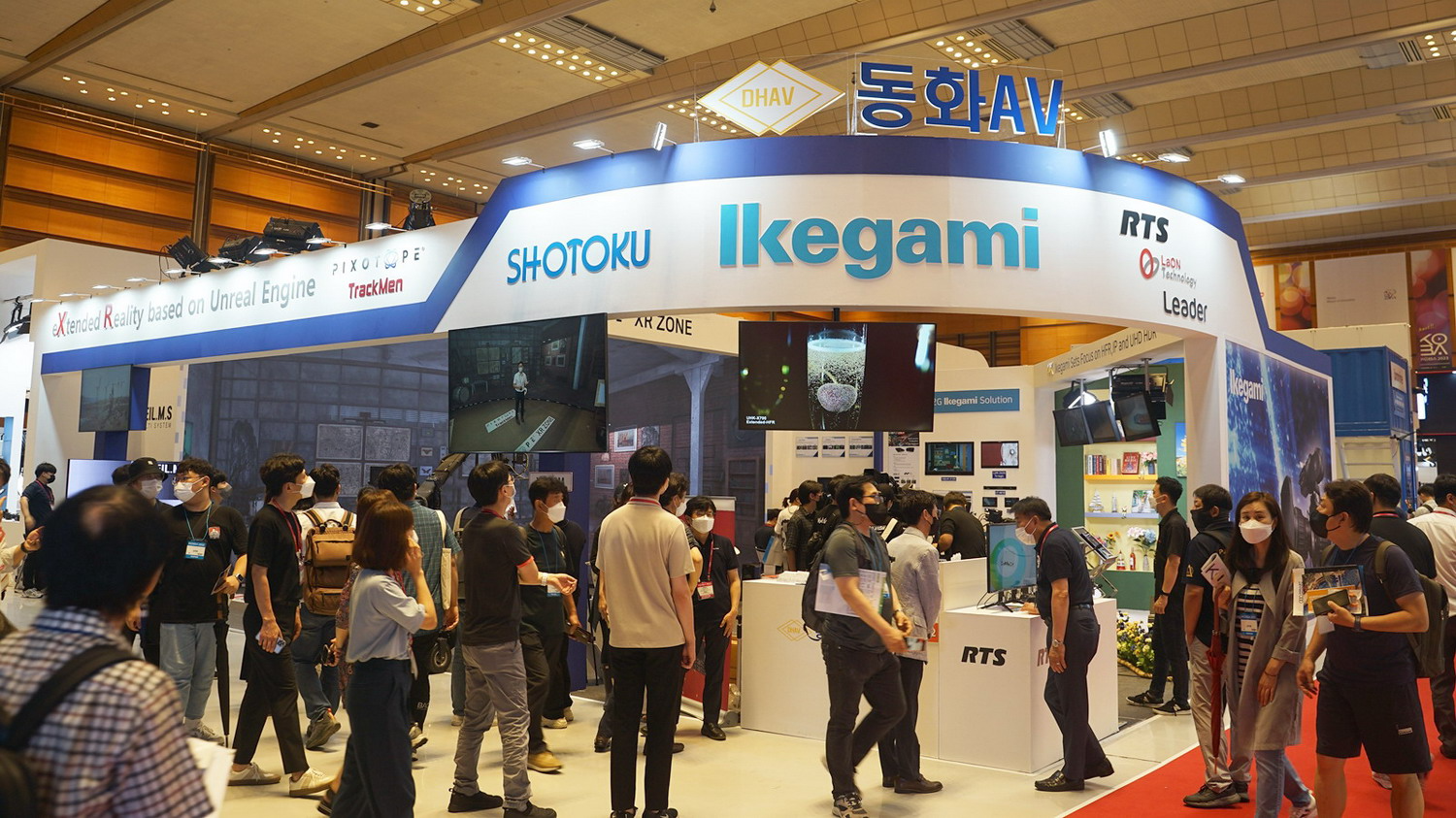 동화AV는 Ikegami社의 4K 카메라로 구성한 촬영 세트를 주력으로 배치하고, Ikegami社의 IP/12G Solution을 소개했다.