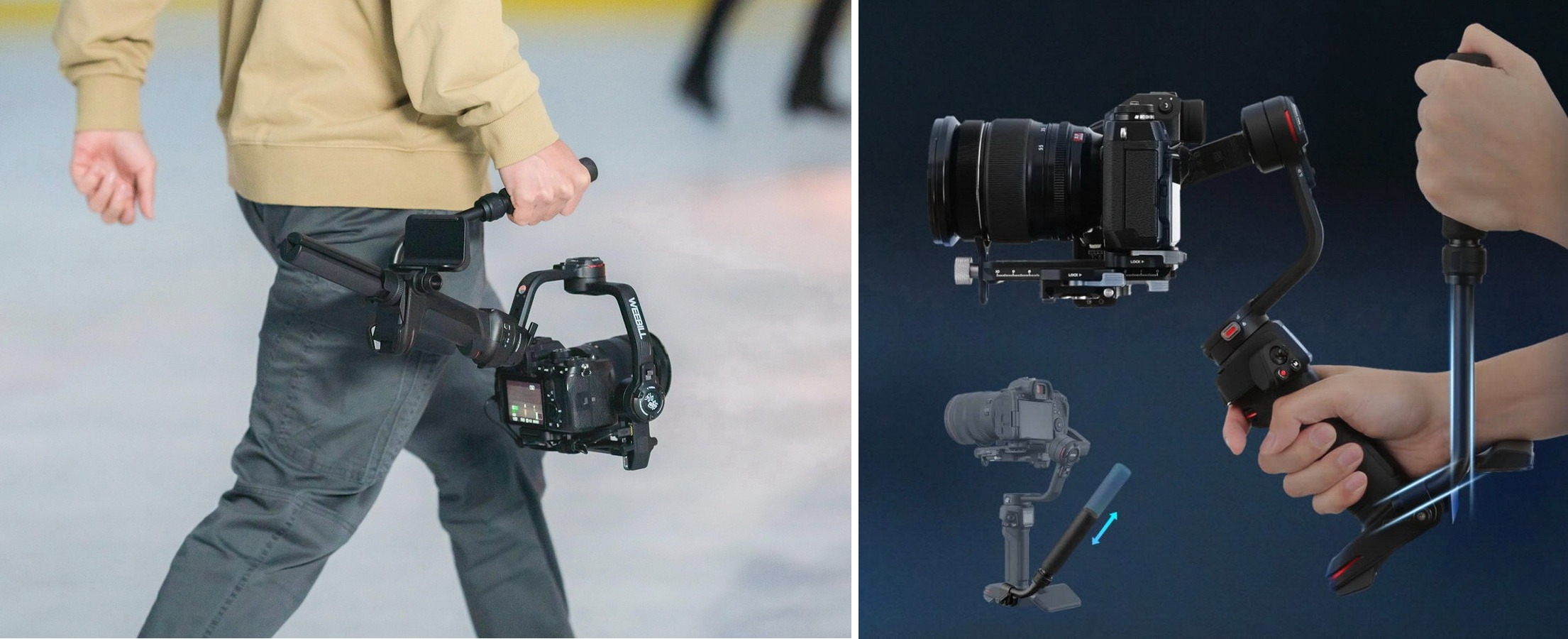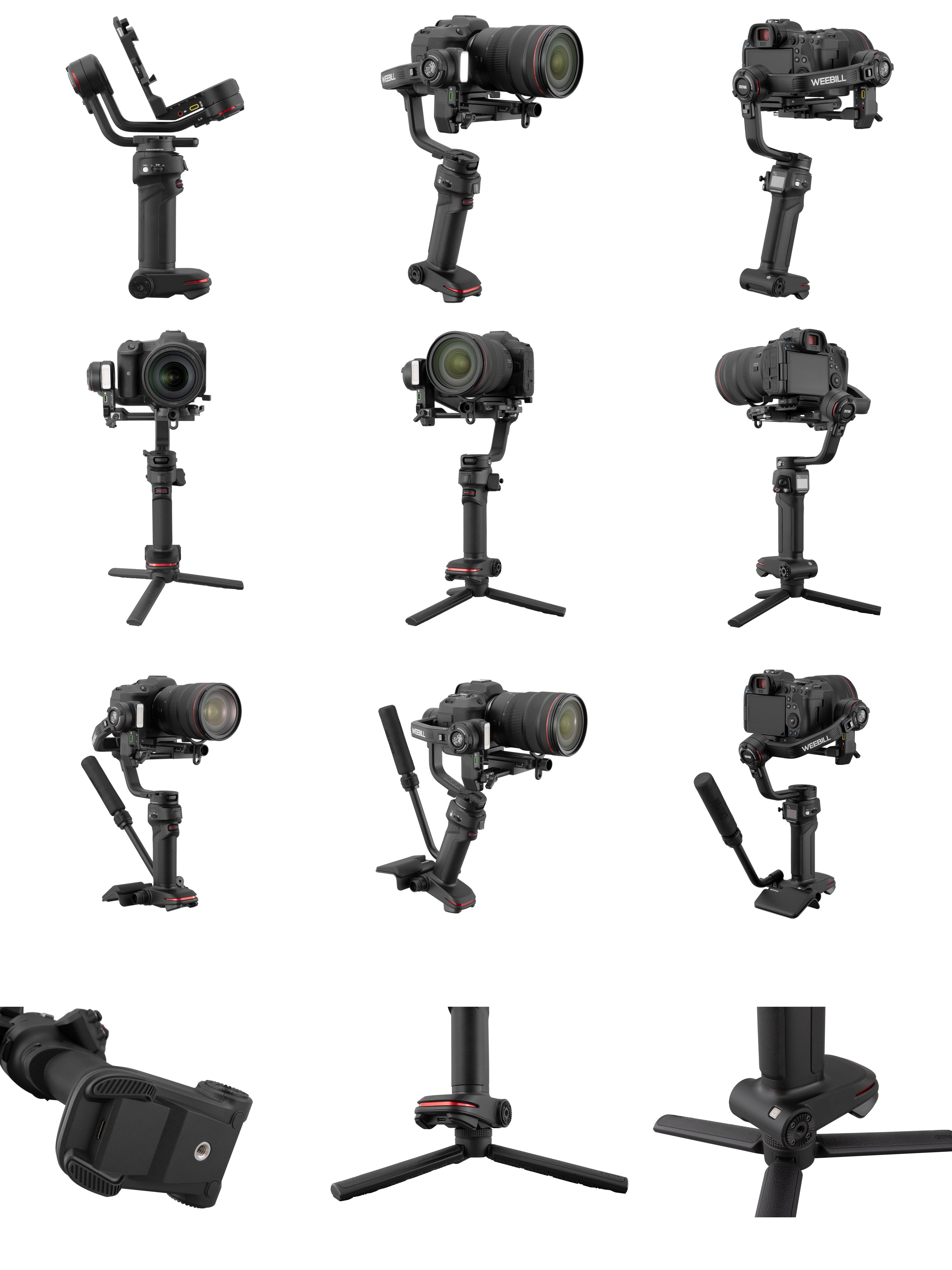 ZHIYUN社의 WEEBILL 3는 Sound, Light, Image Stabilization을 갖춘 Mirrorless Camera 및 DSLR에 최적화된 All-in-one Gimbal이다. 기존 제품보다 Battery 용량을 확대했고, Gimbal 운용에서 가장 중요한 촬영자의 손목 부담을 40% 낮춘 것이 특징이다.